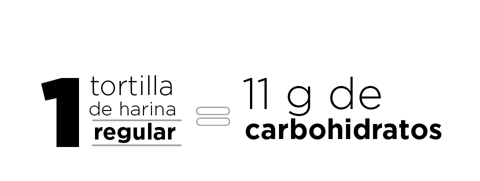 En México, las principales marcas de tortillas de harina contienen, en promedio, 11 g de carbohidratos disponibles por pieza.